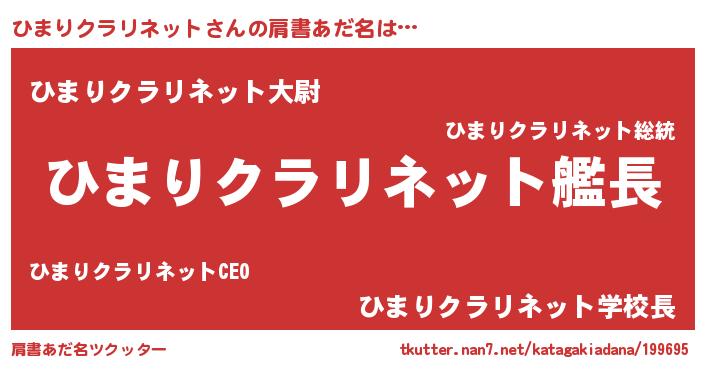 | 意味不明あだ名 | 『エリンギ科ひまりクラリネット属』 |