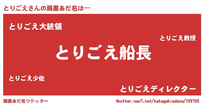 | 意味不明あだ名 | 『とりごえフォーエバー』 |