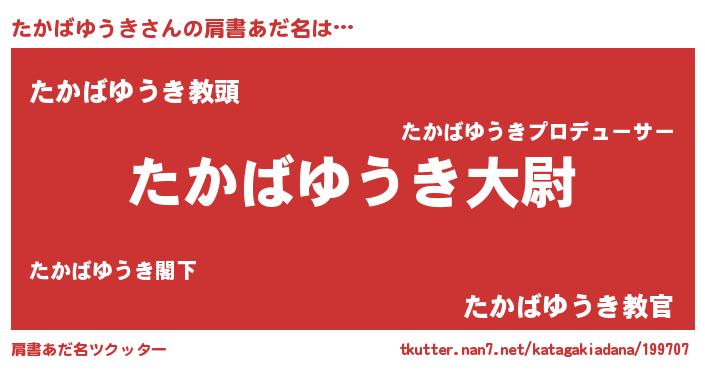 | ファンタジー風あだ名 | 『ユリタカヴァット』『タカディッシュ』 |