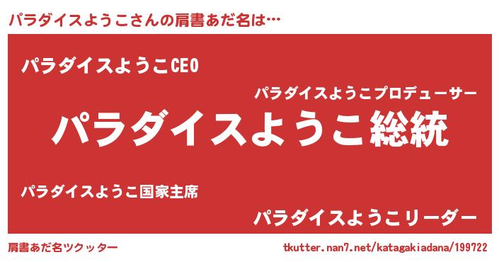 | 男性向けラノベタイトル風あだ名 | 『Re:パラダイスようこから始める異世界生活』 |
