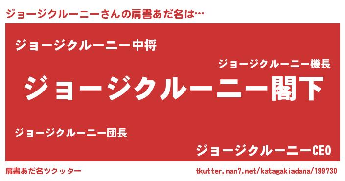 | 男性向けラノベタイトル風あだ名 | 『Re:ジョージクルーニーから始める異世界生活』 |
