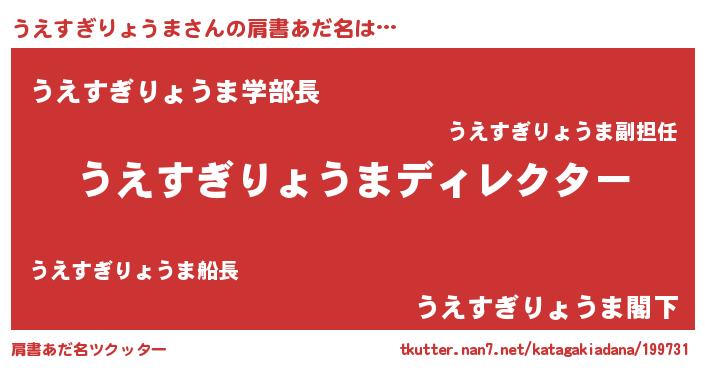 | 男性向けラノベタイトル風あだ名 | 『はたらくうえすぎりょうまさま!』 |