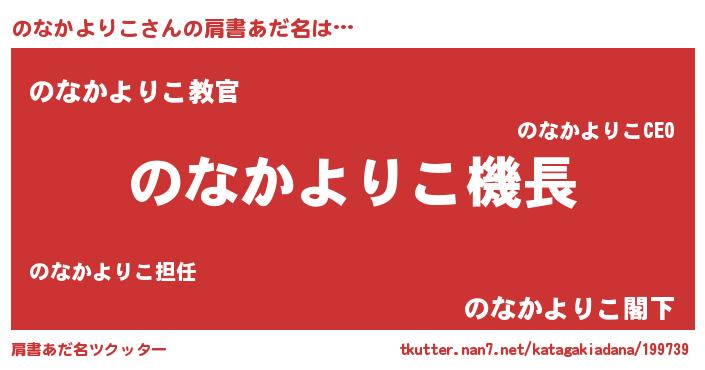 | ヒーロー風カッコイイあだ名 | 『仮面ノナダー』『スーパーノナカヨリコ』 |