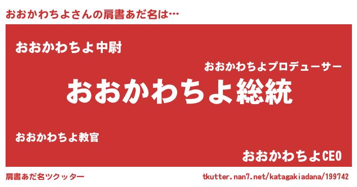 | ヒーロー風カッコイイあだ名 | 『究極戦士オオカワチヨ』『仮面オオダー』 |