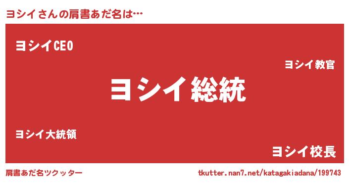 | 欧米人風あだ名 | 『ケンブリッジヨシイ』『マイケルヨシイ』 |