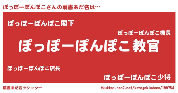 | 意味不明あだ名 | 『住所不定無職ぽっぽーぽんぽこ(50歳)』 |
