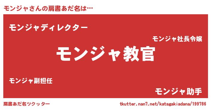 | 意味不明あだ名 | 『住所不定無職モンジャ(77歳)』 |