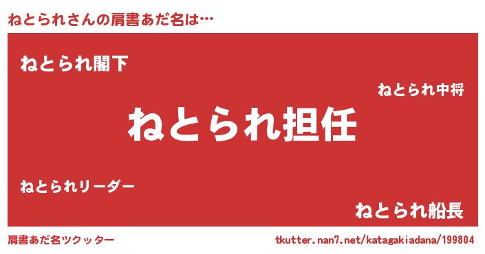 | 意味不明あだ名 | 『永久保存ねとられ』『自称ねとられ』 |