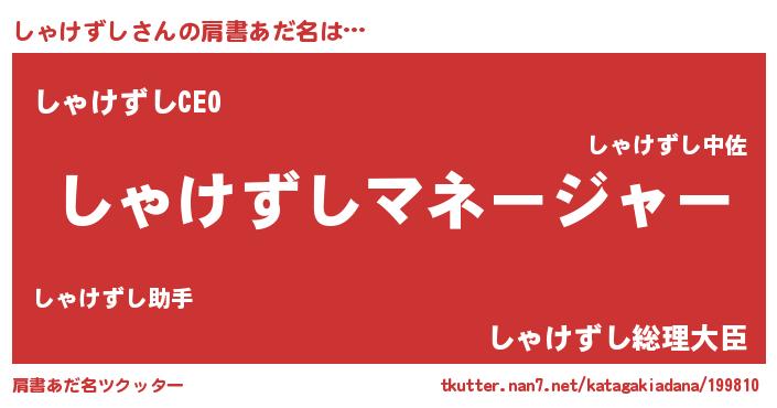 | 男性向けラノベタイトル風あだ名 | 『しゃけずしに滅ぼされるだけの簡単なお仕事です』 |