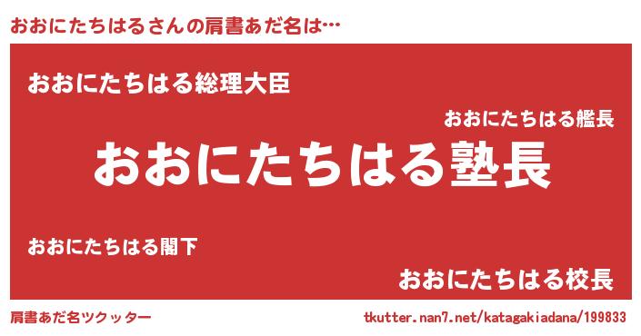 | 意味不明あだ名 | 『とにかく怪しいおおにたちはる』 |
