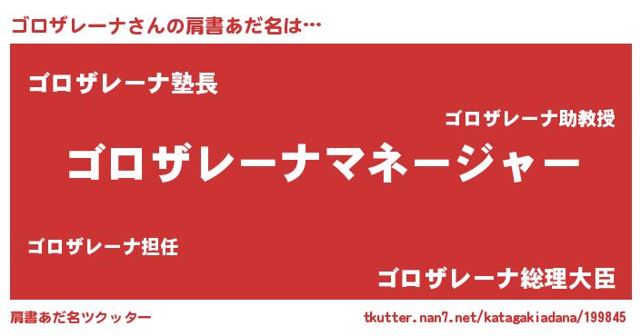 | 男性向けラノベタイトル風あだ名 | 『ゴロザレーナに滅ぼされるだけの簡単なお仕事です』 |