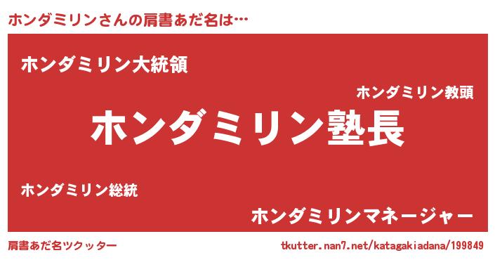 | 意味不明あだ名 | 『とにかく怪しいホンダミリン』 |