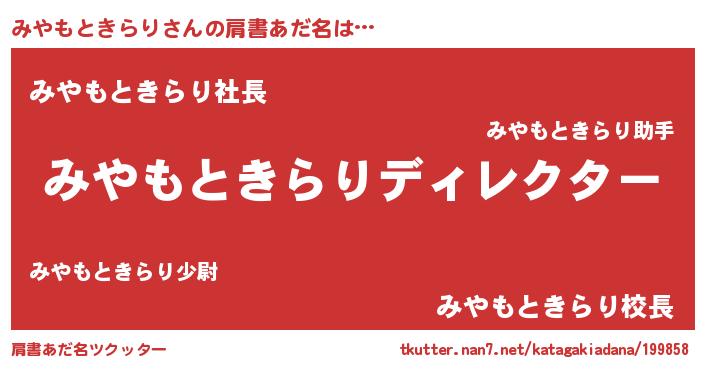 | ヘコむあだ名 | 『みやにゅー』『みやもときらり(小並感)』 |