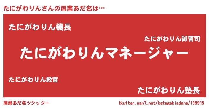 | 男性向けラノベタイトル風あだ名 | 『たにがわりんに滅ぼされるだけの簡単なお仕事です』 |