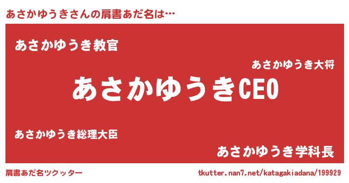 | 男性向けラノベタイトル風あだ名 | 『あさかゆうきの憂鬱』 |