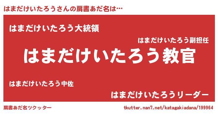 | 意味不明あだ名 | 『住所不定無職はまだけいたろう(10歳)』 |