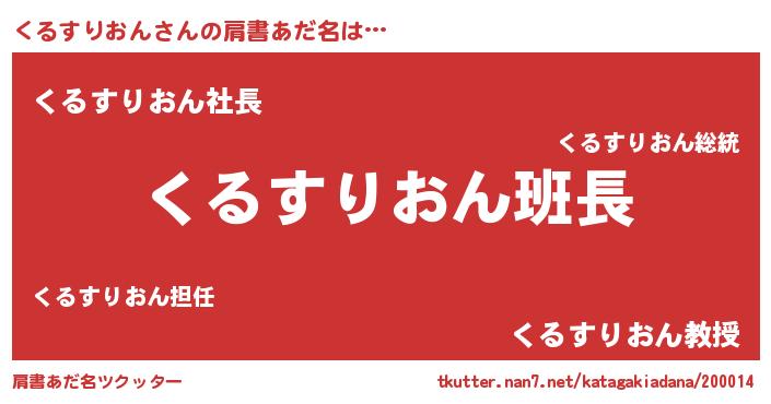 | 意味不明あだ名 | 『とにかく怪しいくるすりおん』 |