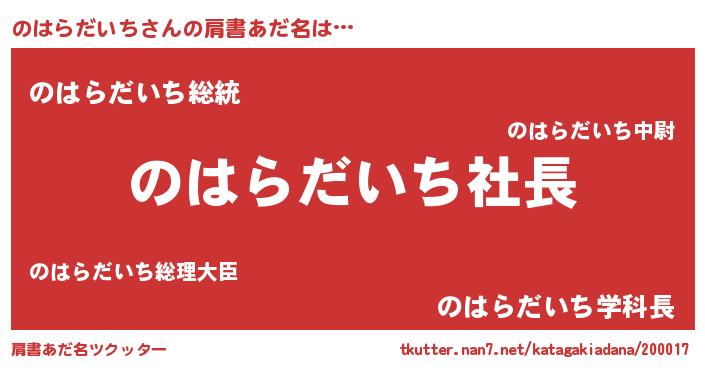 | 胡散臭い通販商品みたいなあだ名 | 『必ず成功するブレスレット…その名も「のはらだいち」』 |