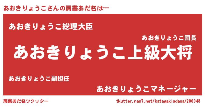 | ヒーロー風カッコイイあだ名 | 『ウルトラあおきりょうこマン』 |