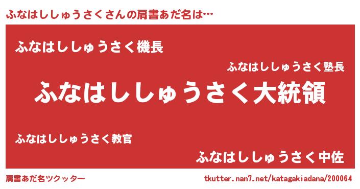| 意味不明あだ名 | 『ふなはししゅうさくフォーエバー』 |