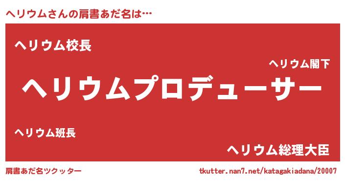 | 男性向けラノベタイトル風あだ名 | 『ヘリウムに滅ぼされるだけの簡単なお仕事です』 |