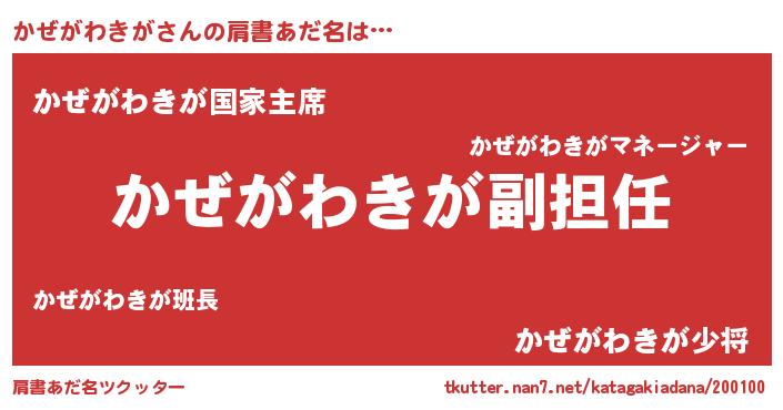 | ヒーロー風カッコイイあだ名 | 『ネオカゼガワキガ』『黄金騎士カゼ』 |