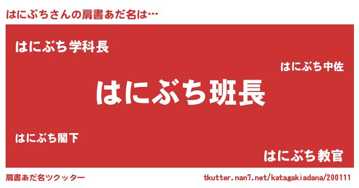 | ポケモン風あだ名 | 『ヒハニブチ』『ハックウザ』 |