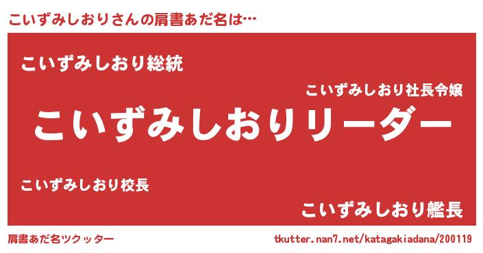 | 意味不明あだ名 | 『とにかく怪しいこいずみしおり』 |