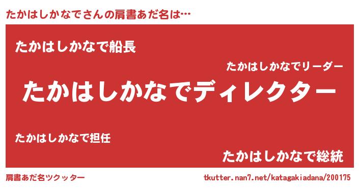 | ピコ太郎風あだ名 | 『タカ二郎』『ピコタ郎』『タコ十郎』 |