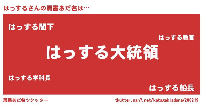 | 意味不明あだ名 | 『はっするフォーエバー』『自称はっする』 |