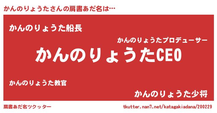 | 女子向けラノベタイトル風あだ名 | 『かんのりょうた姫と円卓の騎士』 |
