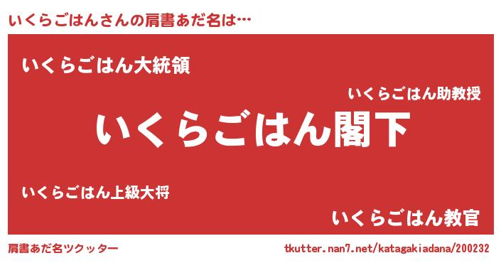 | 伝説のあだ名 | 『秘められし忍者いくらごはん』 |