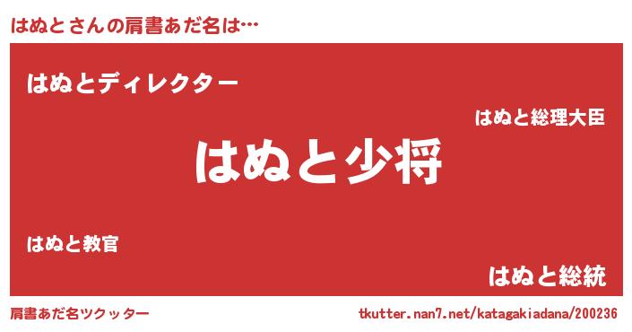 | 男性向けラノベタイトル風あだ名 | 『転生したらはぬとだった件』 |