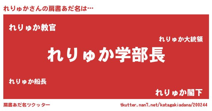 | 女子向けラノベタイトル風あだ名 | 『れりゅか恋絵巻』『闇のれりゅか』 |