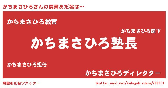 | 意味不明あだ名 | 『とにかく怪しいかちまさひろ』 |