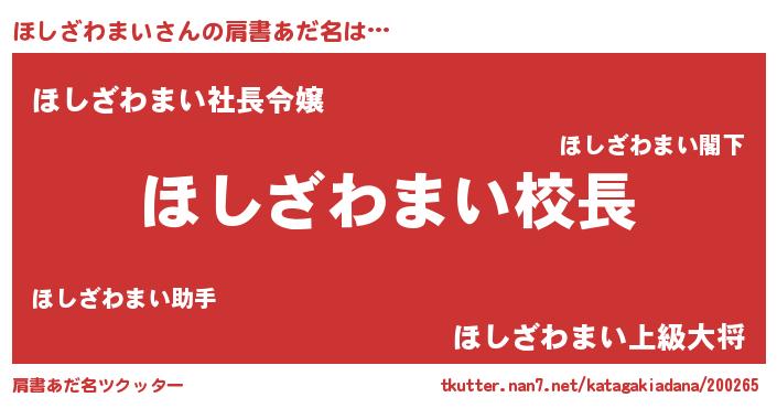 | 男性向けラノベタイトル風あだ名 | 『ほしざわまいという概念が存在しない退屈な世界 』 |