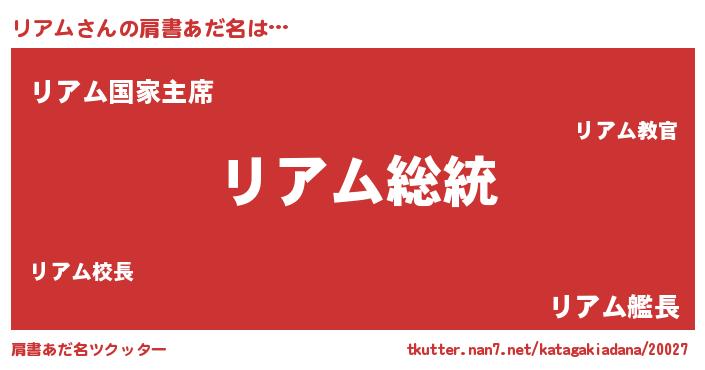 | 意味不明あだ名 | 『自称リアム』『リアムフォーエバー』 |