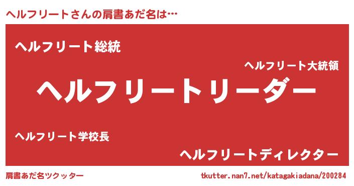 | 男性向けラノベタイトル風あだ名 | 『ダンジョンにヘルフリートを求めるのは間違っているだろうか』 |