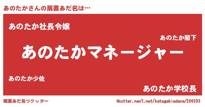 | 男性向けラノベタイトル風あだ名 | 『あのたかに滅ぼされるだけの簡単なお仕事です』 |