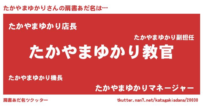 | ヒーロー風カッコイイあだ名 | 『仮面タカダー』『ネオタカヤマユカリ』 |