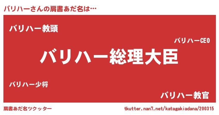 ヒーロー風カッコイイあだ名 | 『ウルトラバリハーマン』『ネオバリハー』 |