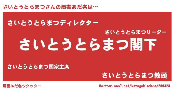 | ヘコむあだ名 | 『さいとうとらまつ(小並感)』『さいっ子』 |