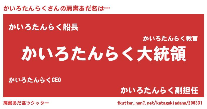 | 意味不明あだ名 | 『かいろたんらくフォーエバー』 |