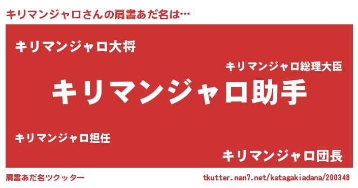 | 女子向けラノベタイトル風あだ名 | 『キリマンジャロ恋絵巻』 |