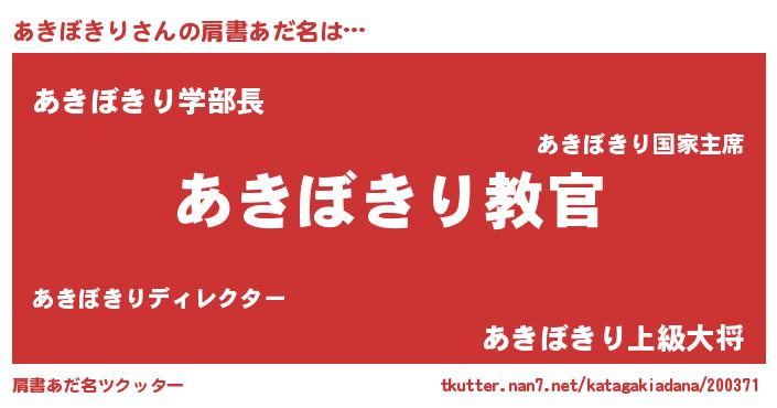 | 意味不明あだ名 | 『住所不定無職あきぼきり(89歳)』 |