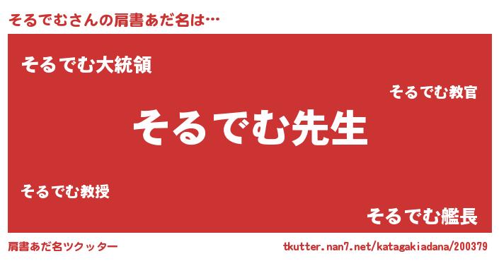 | ヘコむあだ名 | 『そるでむ(笑)』『なまこ酢』 |