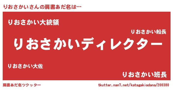 | 男性向けラノベタイトル風あだ名 | 『りおさかいに滅ぼされるだけの簡単なお仕事です』 |