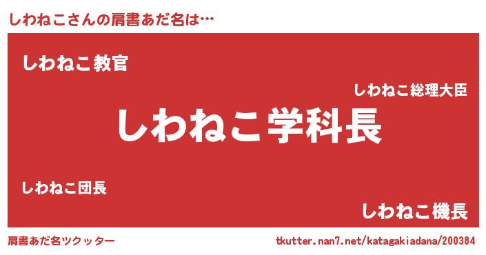 | 男性向けラノベタイトル風あだ名 | 『ノーゲーム・ノーシワネコ』 |