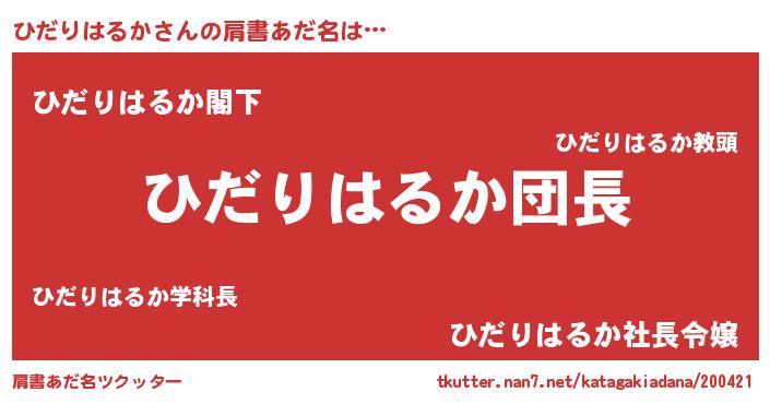 ヒーロー風カッコイイあだ名 | 『魔戒騎士ヒダ』『スーパーヒダリハルカ』 |