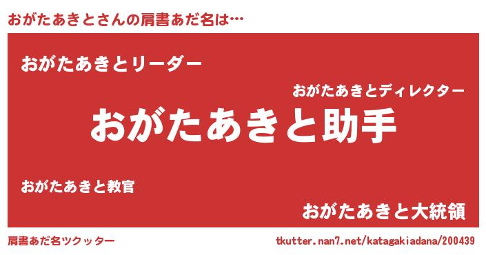 | 男性向けラノベタイトル風あだ名 | 『おまえをオタクにしてやるから、俺をおがたあきとにしてくれ! 』 |